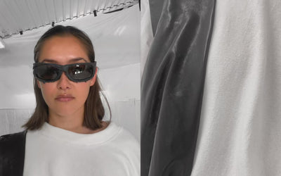 Oversized sweater with wide crew neck, dropped shoulders and sectioned long sleeves.